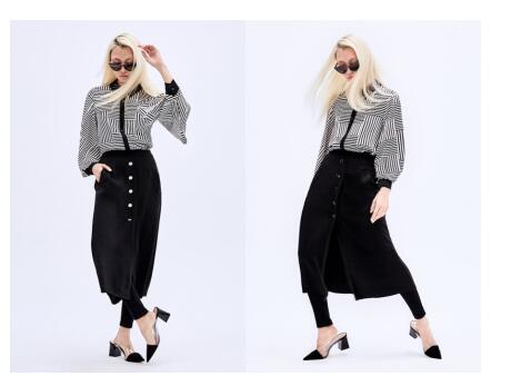如果论起单排扣长裙的好处,估计能说出一箩筐。纽扣的设计让中长裙简约又大气,穿上身之后可以尽显复古优雅。