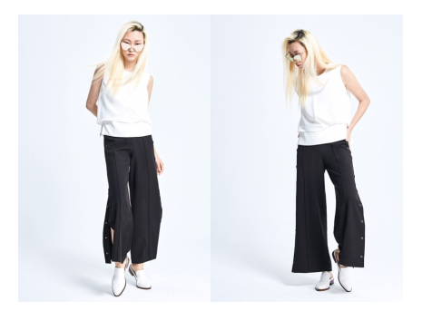 率性的单排扣阔腿裤,可以展现强大的气场,通过前片的压线修饰腿部线条,拉长身形,既能展现曼妙的身材,又能衬托出温婉高级的气质。