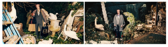 延续前几季灵感,Harry Styles依旧与宠物相伴,而本季则携小猪与天鹅出镜。他在充满古典主义风格的氛围中怪诞且冷漠,体现古驰将历史元素与当代风格的巧妙融合,展现全新男士正装系列的摩登美学。