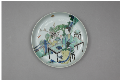 五彩仕女婴戏图瓷盘