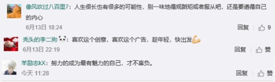 如果说罗云熙的冰火大片是开篇,三位达人的发现影像是引人入胜的铺叙,那珀莱雅和二更视频联手制作的纪事视频,则是去探究“去发现”在普通用户身上产生的化学反应。带入不同的行业、年龄,在更多人的故事里,挖掘关于“去发现”的不同解读。融合偶像和同辈的影响力,对发现自我,网友们也有了更多切身的体会和感想。