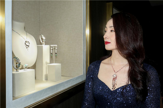 图47-51:知名演员咏梅参观卡地亚高级珠宝展,佩戴卡地亚MAGNITUDE高级珠宝系列LYRIDES项链、手镯、耳环