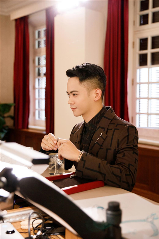 图32-36:青年演员陈飞宇出席晚宴,佩戴Clé de Cartier镂空腕表、卡地亚古董珍藏系列柏树装饰胸针、卡地亚LOVE 系列戒指、卡地亚猎豹系列袖扣