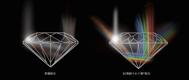 据ALLOVE董事林烨先生介绍,ALLOVE历经32年的研发,遴选天然钻坯,以“81刻面十全十美钻石切工”创造出一颗外部呈81刻面,内部呈现10颗心、10支箭光学效应的钻石,被钻石行业称之为“十心十箭®钻石”。不仅消除了普通钻石的漏光点,实现光线全反射,且呈现出七彩全光谱火彩效应。据权威学者研究,十心十箭®钻石综合亮度至少是普通钻石的150%。